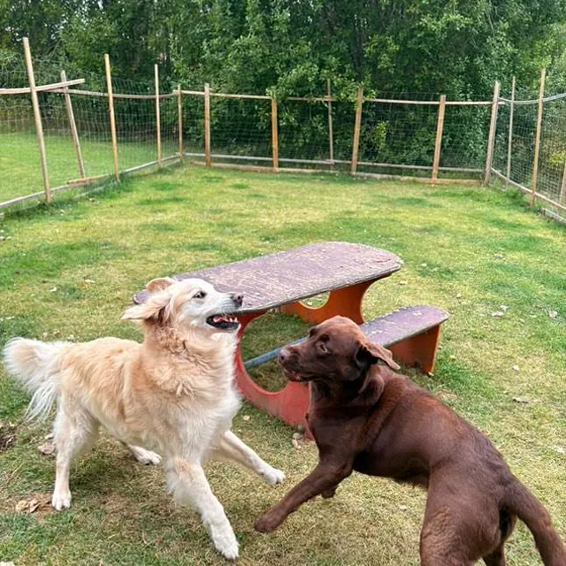 Varje hund har sin egen box och vi ser till att den får närhet, kloklippning vid behov och en meningsfull dag fylld av omtanke.